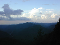 | そして雨の龍神温泉を後に、やって来ました熊野本宮。 龍神スカイライン通って、見渡す限り続く 「果無し山脈」と呼ばれた紀伊山脈を越えて〜 もちろん私らは車(いや軽だけどさ)で通ったんだけどさ 近年やっといい道が出来て車も楽になった との地元の意見だけど車でも凄い山ですわ。 この道を1000年ぐらい前、牛車と馬と徒歩で 向かい進んだとあれば、こりゃ凄い旅か巡礼 (天皇なら御幸<みゆき>)ですな。 でも、「蟻の熊野詣で」と称された程、 沢山の人がこの険しい山越えて参拝したんだな〜。 信仰心なんだろうねー多分。 物見遊山で越えられる山道じゃないからね。 あ、そうそう。この辺で熊野信仰について脱線しよう。 |