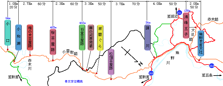 だいたい、那智から本宮までの古道の概略図と思ってくださいマセ